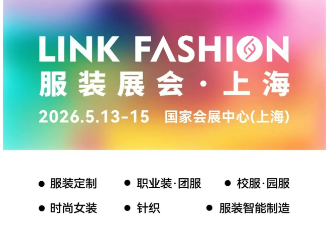 2026年5月13-15日,LINK FASHION服裝展會(上海)盛大舉辦!服裝定制、職業裝·團服、校服·園服、時尚女裝、針織、服裝智能制造六大主題璀璨集結,2000+品質源頭工廠與品牌商,共同為您呈現前沿趨勢、新品爆品與高效的供應鏈資源。